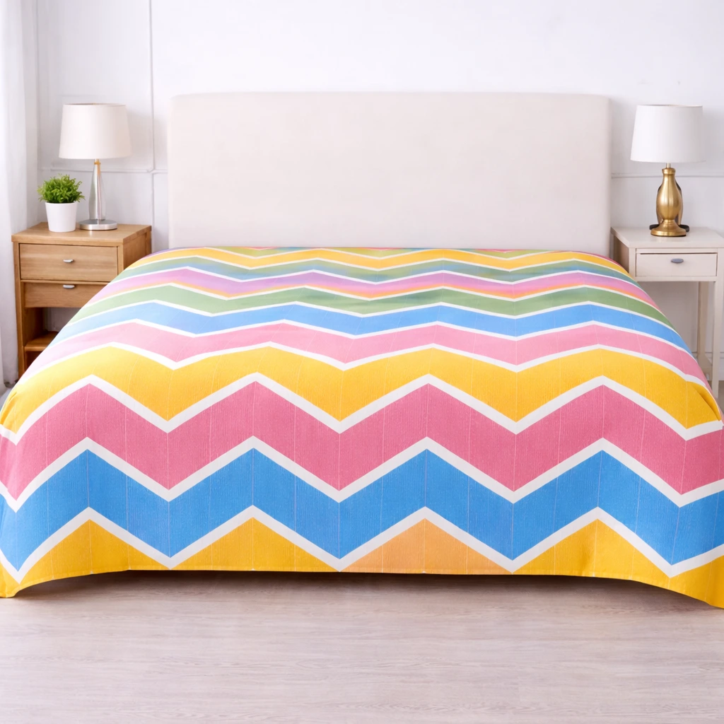 Chevron Cotton Double Bed Cover is designed to bring colour, comfort, and modern style into your bedroom. Featuring a vibrant multicolour zigzag pattern, this bed cover adds energy and freshness to contemporary interiors while maintaining a clean, Best elegant look.