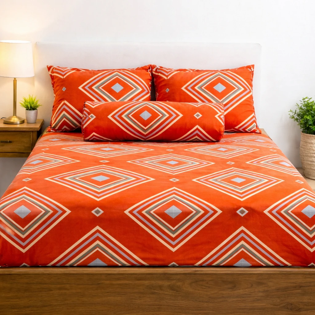 The Geometric Pattern Cotton Double Bed Cover delivers comfort, durability, and modern design in one complete set: