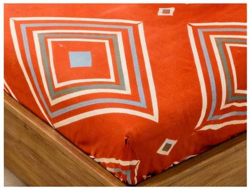 The striking brown-orange base is enhanced with contemporary diamond-shaped geometric patterns in white, grey, and light blue tones. This Geometric Pattern Cotton Double Bed Cover blends vibrant design with structured symmetry, making it perfect for minimal and modern interiors.